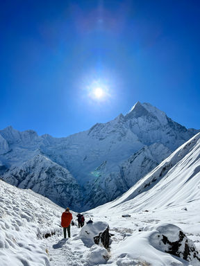 Luego nos sumergimos en las montañas para hacer la ruta conocida como Mardi Himal ideal para principiantes con buen estado físico: durante 5 días caminaremos cerca de 45 Kms con un grado de desnivel importante! y tendremos vistas a montañas tan imponentes como Annapurna I, Annapurna Sur, Hiunchuli, Machhapuchhre (Fishtail), Gangapurna y otras montañas de la cordillera del Annapurna.